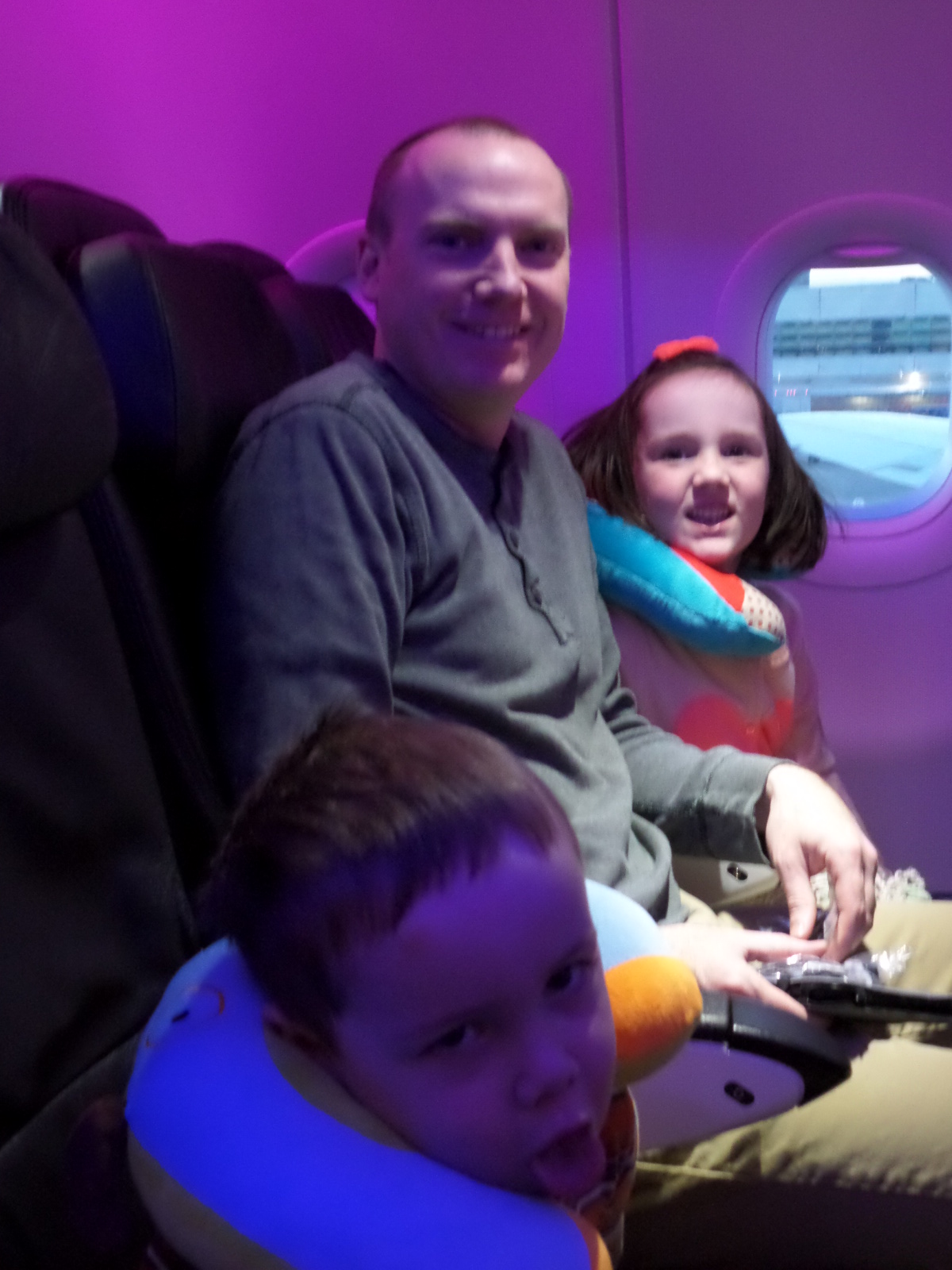 We departed Boston on the 28th of January. The first leg of the trip (7 hours to Los Angeles) was fairly uneventful. In flight entertainment was limited, but the kids had Fruit Loops so all was right in their world.